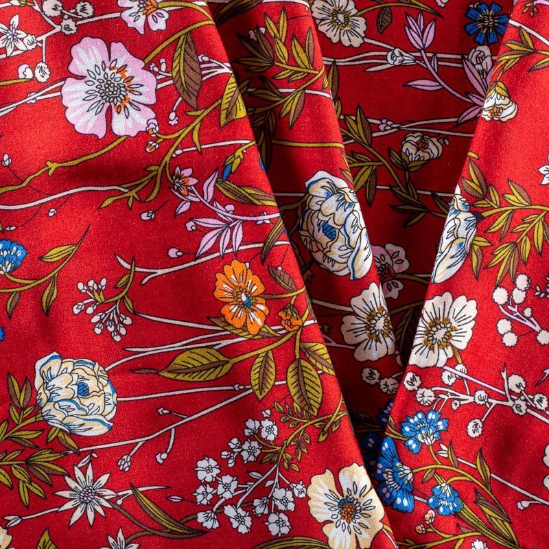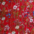 Плательно-блузочный штапель с элегантным цветочным принтом на красном фоне. Мягкий, тонкий, нежный, пластичный, приятный на ощупь, хорошо драпируется, практичный. Подойдет для пошива платья, топа, блузки, рубашки, юбки, летних брюк.