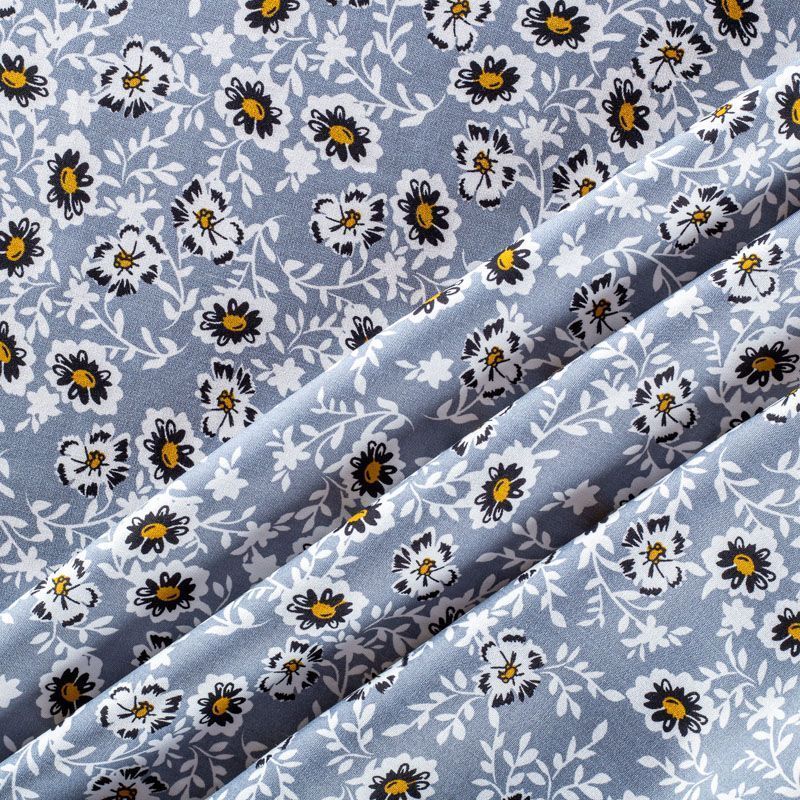 Плательно-блузочный штапель с не крупным цветочным принтом на сером фоне. Мягкий, тонкий, нежный, пластичный, приятный на ощупь, хорошо драпируется, практичный. Подойдет для пошива платья, топа, блузки, рубашки, юбки, летних брюк.