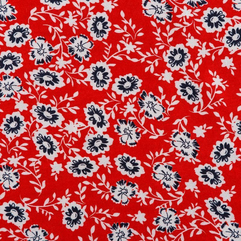 Плательно-блузочный штапель с не крупным цветочным принтом на красном фоне. Мягкий, тонкий, нежный, пластичный, приятный на ощупь, хорошо драпируется, практичный. Подойдет для пошива платья, топа, блузки, рубашки, юбки, летних брюк.