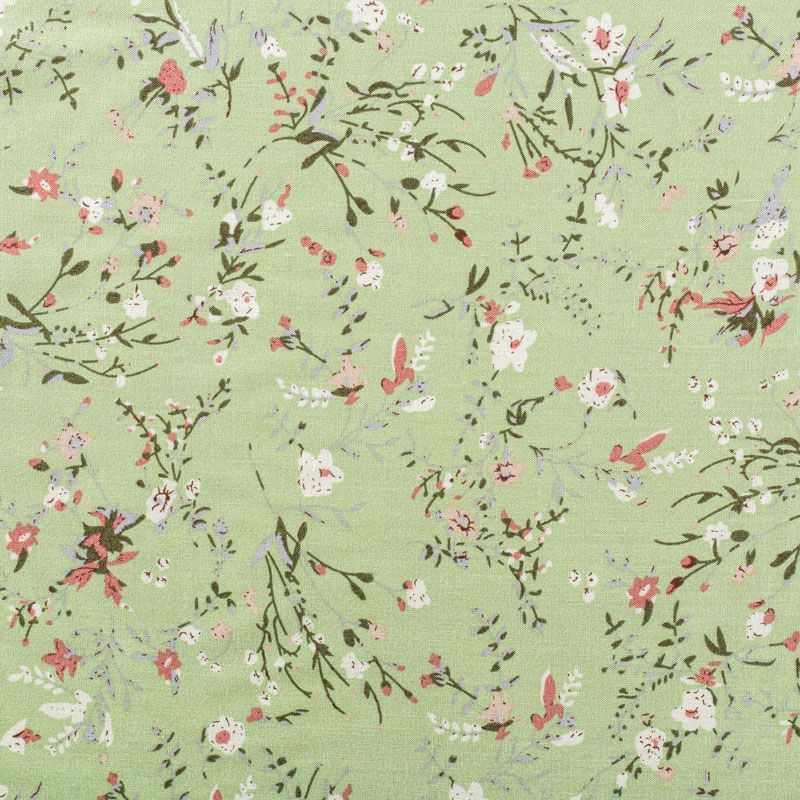 Плательно-блузочный штапель с цветочным принтом на зеленом фоне. Мягкий, тонкий, нежный, пластичный, приятный на ощупь, хорошо драпируется, практичный. Подойдет для пошива платья, топа, блузки, рубашки, юбки, летних брюк.