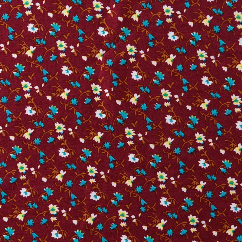 Плательно-блузочный штапель с мелкоцветным принтом на бордовом фоне. Мягкий, тонкий, нежный, пластичный, приятный на ощупь, хорошо драпируется, практичный. Подойдет для пошива платья, топа, блузки, рубашки, юбки, летних брюк, комбинезона.