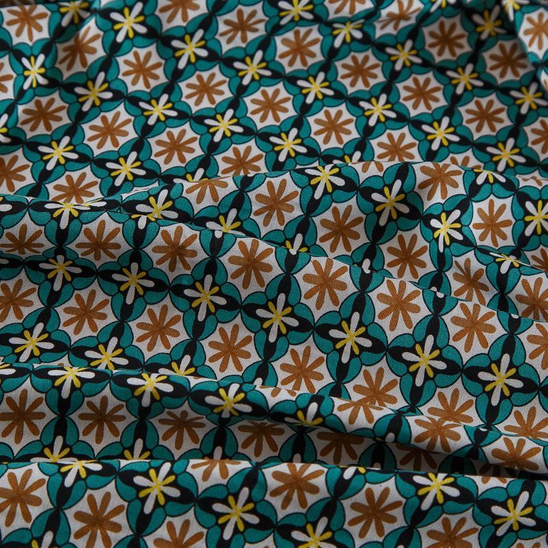 Штапель 069-17532 бирюзово-зеленый принтованный