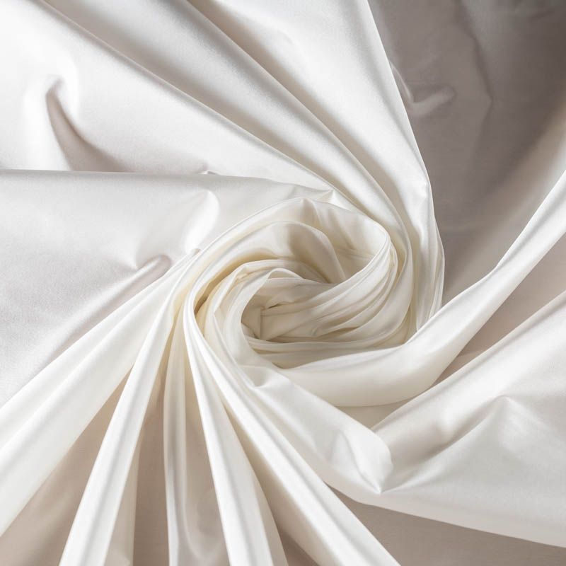Роскошная тафта из натурального шелка, имеет матовый блеск и цвет молочного жемчуга. Ткань пластичная, держит форму, красиво драпируется, шуршит при сминании. Рекомендуем для пошива свадебного платья или костюма, жакета, брюк, корсета, палантина.