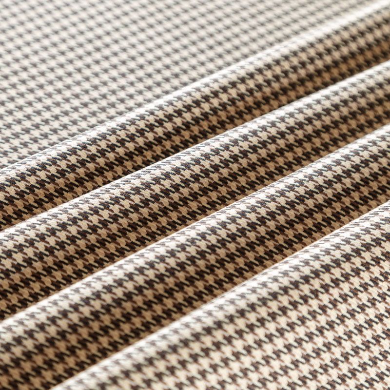 Итальянская костюмно-плательная шерсть средней плотности в актуальном бежевом цвете с классическим узором гусиная лапка в коричневых оттенках. Поверхность ткани имеет выраженное диагональное плетение, на ощупь гладкая, полированная благодаря содержанию шерсти ламы. Ткань очень мягкая, теплая, уютная, шерсть не колется, в носке очень комфортная. Подойдет для пошива стильного костюма, мужского пиджака, платья, жакета, юбки, шорт или легкого пальто для осенне-весеннего сезона.