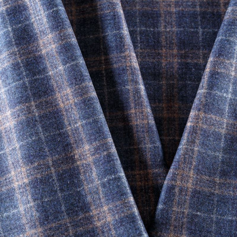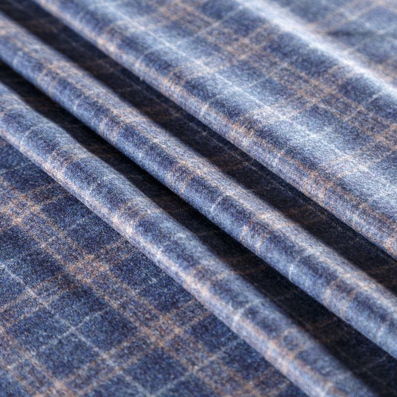 Итальянская шерстяная фланель в приглушенном синем оттенке в клетку. Ткань костюмно-плательной плотности, очень мягкая, приятная на ощупь, не толстая, пластичная. Прерасно подойдет для пошива платья, сарафана, юбки, брюк, шорт, жакета, жилета, а также верхней одежды с дополнительным утеплителем.
