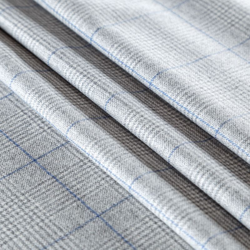 Итальяская костюмно-плательная шерсть светло-серого оттенка в клетку тартан. Ткань средней плотности, пластичная, очень приятная на ощупь, драпируется в слегка держащие форму складки, с полотняным переплетением, не тянется. Подойдет для всех видов изделий - платьев, сарафанов, модных жакетов, жилетов, брючных и юбочных костюмов, кюлотов, брюк-палаццо, юбок различных фасонов.