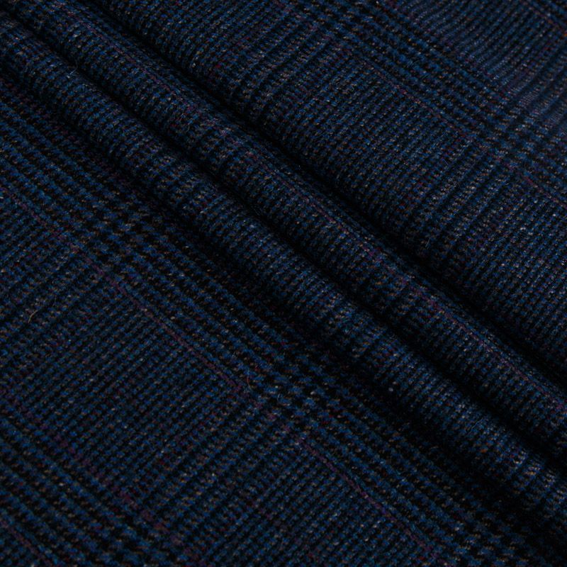 Итальянская костюмно-плательная смесовая ткань средней плотности в синем оттенке в клетку тартан. Ткань не сухая, пластичная, приятная на ощупь, почти не мнется, хорошо драпируется. Отлично подойдет на костюм, жилет, жакет, легкое пальто, юбку, брюки, платье, сарафан, шорты.