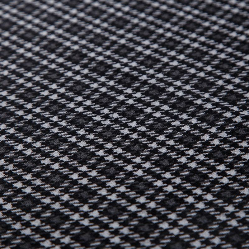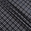 Итальянская костюмно-плательная смесовая ткань средней плотности в белом оттенке в мелкую серо-черную клетку. Ткань не сухая, формоустойчивая, пластичная, приятная на ощупь, почти не мнется, хорошо драпируется. Ткань отлично подойдет на костюм, жилет, жакет, легкое пальто, юбку, брюки, платье, сарафан, шорты.