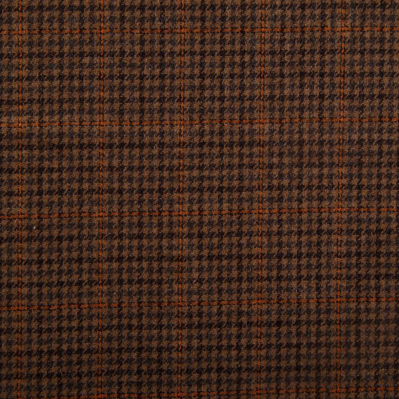 Итальянская костюмно-плательная шерсть средней плотности в коричневом оттенке в клетку тартан. Ткань не сухая, тонкая, пластичная, приятная на ощупь, почти не мнется, хорошо драпируется, тянется за счет эластана в составе. Отлично подойдет на костюм, жилет, жакет, легкое пальто, юбку, брюки, платье, сарафан, шорты.