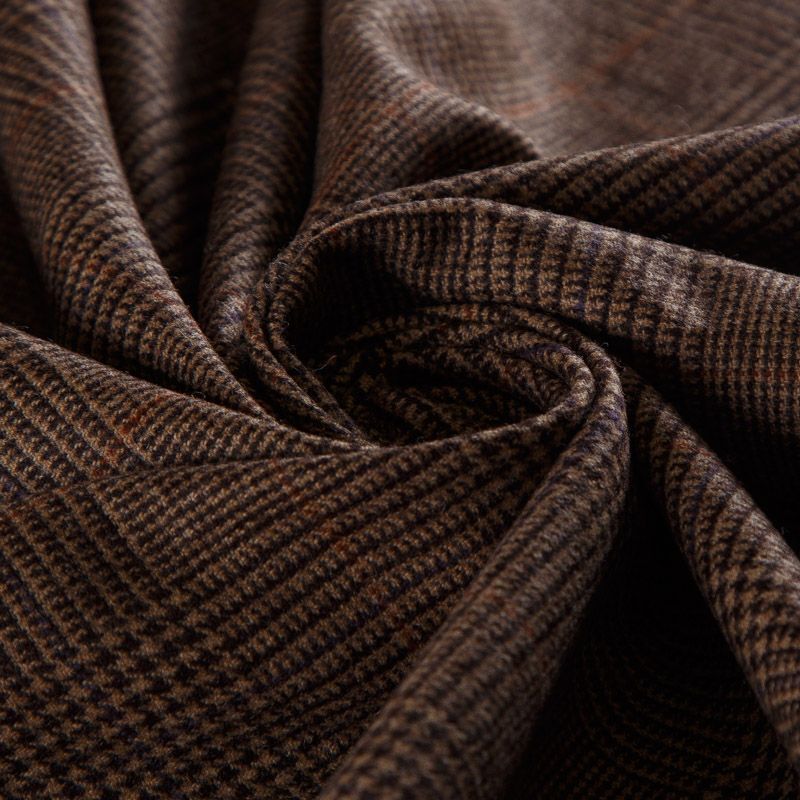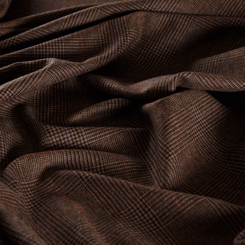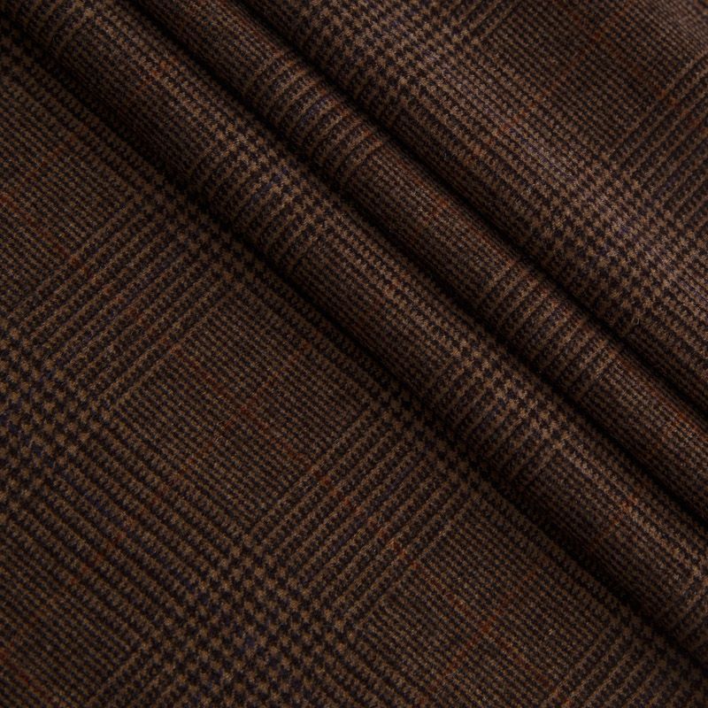 Итальянская шерстяная костюмная клетка гленчек в духе настоящей английской классики в благородном коричневом оттенке. Ткань мягкая, хорошо держит форму, не мнётся, не колется. Отлично подойдёт для жакета, платья, жилета, облегчённого пальто, брюк или юбки.