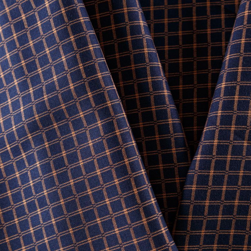 Оригинальная двухсторонняя ткань с принтом клетка с одной стороны и мелким геометрическим рисунком в виде оранжевых точек - с другой. Материал плотный, но не толстый, хорошо драпируется, имеет мягкую поверхность с небольшими ворсинками. Прекрасно подходит для пошива платьев, сарафанов, юбок, брюк, жакетов.
