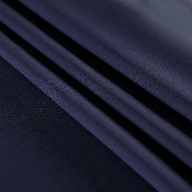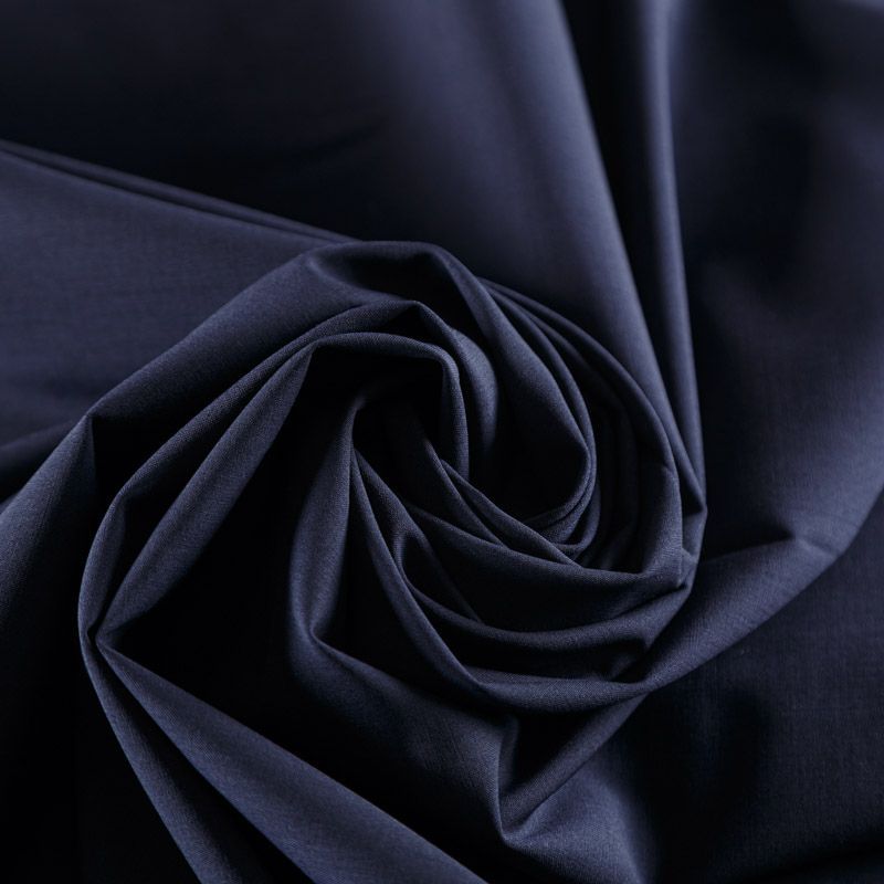 Итальянская шерстяная костюмно-плательная ткань средней плотности в темно-синем оттенке. Материал в меру мягкий и приятный на ощупь, немного тянется за счет эластана в составе, держит форму, хорошо драпируется и образует устойчивые складки. Ткань отлично подойдет на костюмы, юбки, брюки, платья, жакеты, для пошива школьной формы.