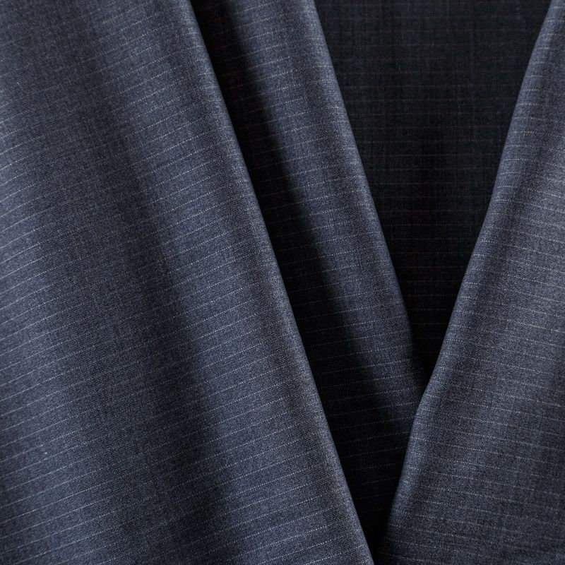Итальянская шерстяная костюмно-плательная ткань средней плотности в сером оттенке в тонкую белую полоску. Материал в меру мягкий и приятный на ощупь, держит форму, хорошо драпируется и образует устойчивые складки. Ткань отлично подойдет на костюмы, в том числе мужские, юбки, брюки, платья, жакеты, для пошива школьной формы.