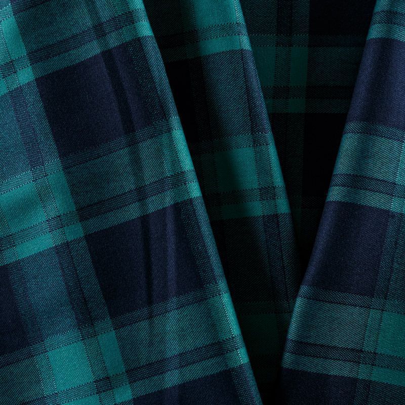 Костюмно-плательная шотландка средней плотности в сине-зеленых оттенках. Материал в меру мягкий и приятный на ощупь, держит форму, хорошо драпируется и образует устойчивые складки. Ткань отлично подойдет на костюмы, в том числе мужские, юбки, брюки, платья, жакеты, для пошива школьной формы.