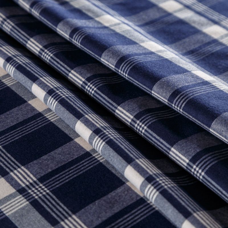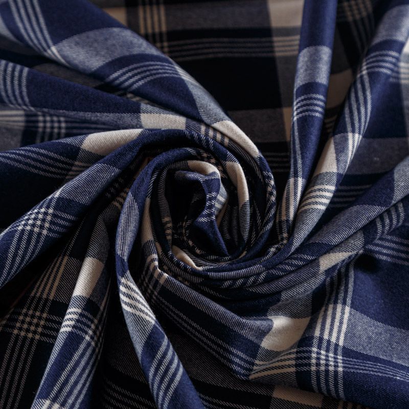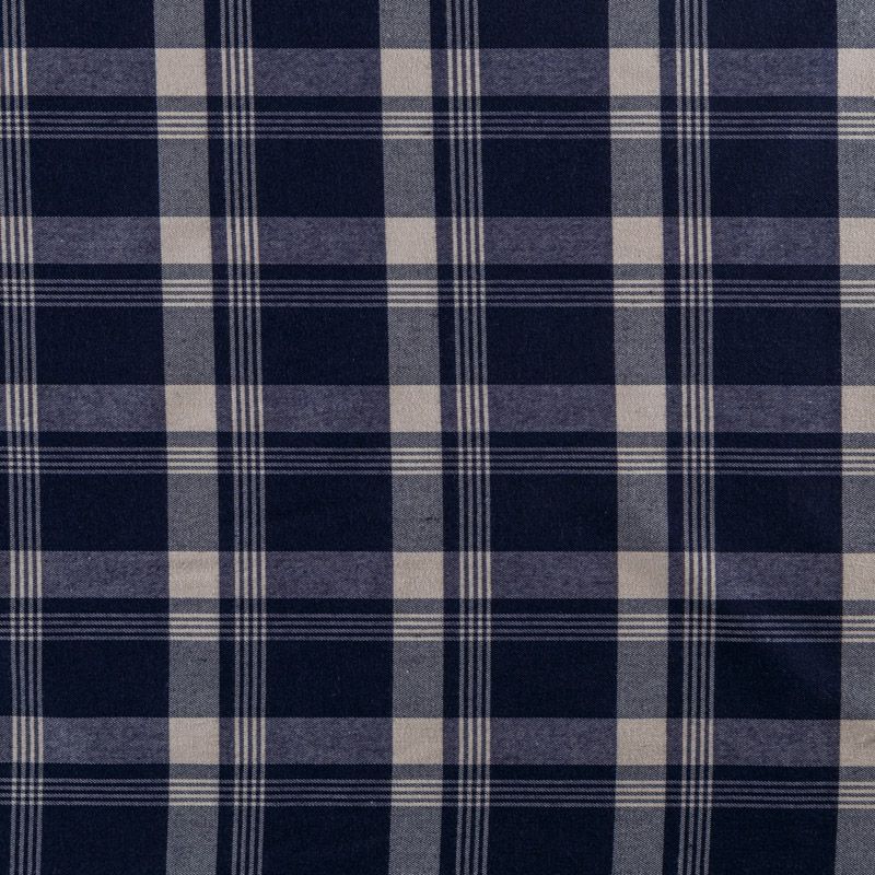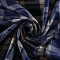 Костюмно-плательная шотландка средней плотности, мягкая и приятная на ощупь, немного тянется, формоустойчива, хорошо драпируется и образует мягкие складки. Сочетание молочного и темно-синего цветов образует сложную красивую клетку тартан. Ткань отлично подойдет на костюмы, юбки, брюки, платья, жакеты, для пошива школьной формы.