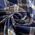 Итальянская костюмная шерсть средней плотности, мягкая и приятная на ощупь, формоустойчива, хорошо драпируется и образует мягкие складки. Сочетание линий синего, бежевого, красного и белого цветов образует сложную красивую клетку тартан. Ткань отлично подойдет на костюмы, юбки, брюки, платья, сарафаны, жакеты, для школьной формы.
