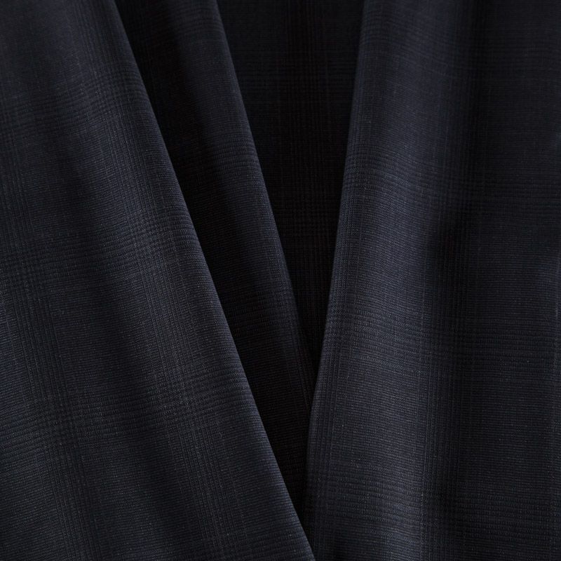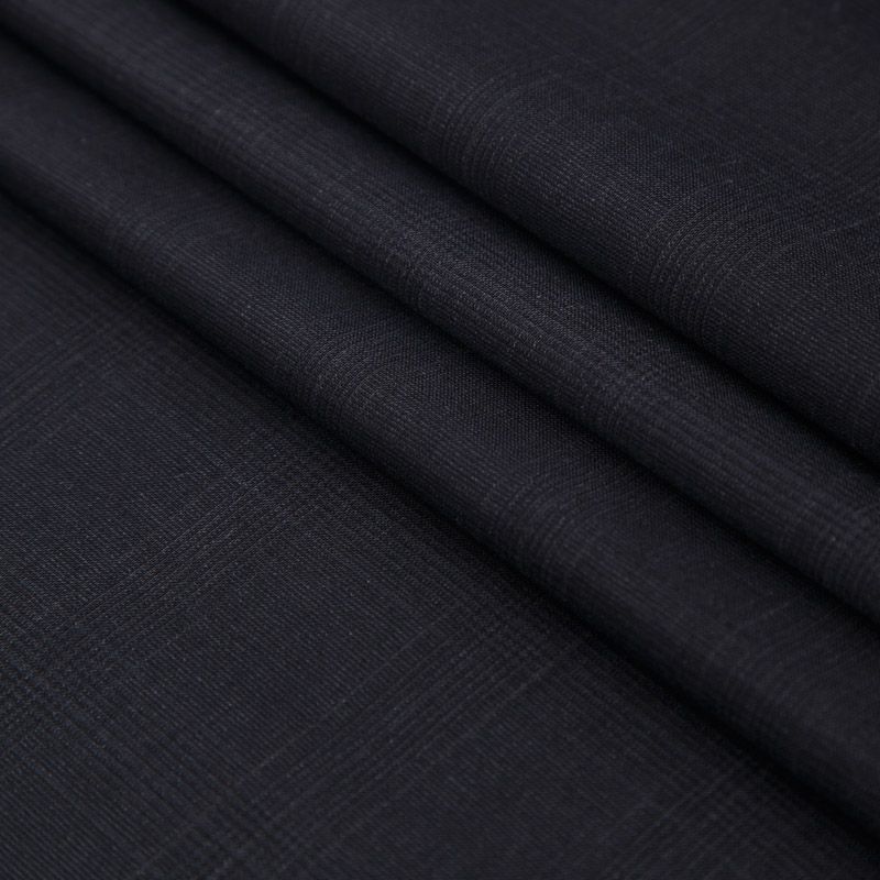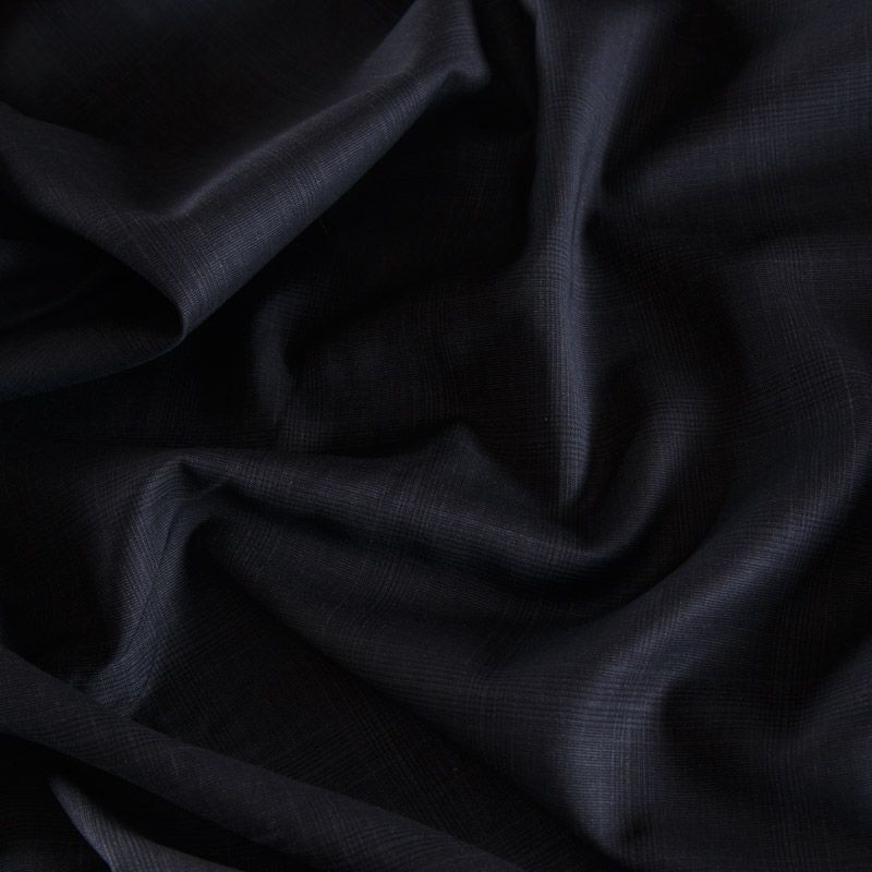 Итальяская костюмно-плательная шерсть с эластаном шикарного качества в черном оттенке в едва заметную элегантную клетку. Ткань средней плотности, тонкая, очень приятная на ощупь, драпируется в слегка держащие форму складки, с полотняным переплетением, тянется. Подойдет для всех видов изделий - платьев, сарафанов, модных жакетов, жилетов, брючных и юбочных костюмов, кюлотов, брюк-палаццо, юбок различных фасонов.