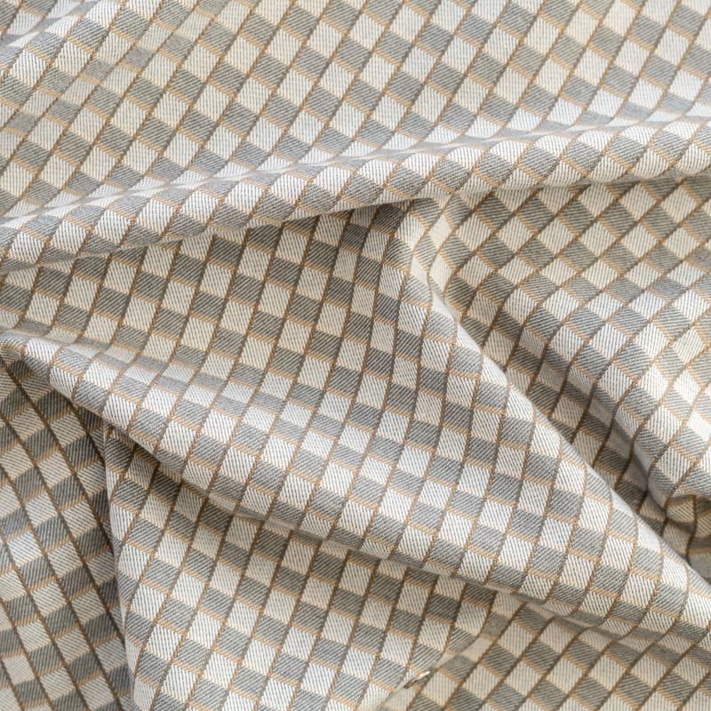 Плотная костюмно-плательная ткань, немного суховатая, но приятная на ощупь, тянется за счет эластана, формоустойчива, не мнется, хорошо драпируется. Мелкая клетка образована за счет расположенных в шахматном порядке квадратиков серого цвета в разных оттенках. Ткань отлично подойдет на костюмы, юбки, брюки, платья, жакеты, кардиганы.
