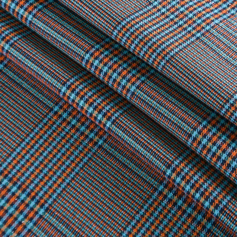 Ткань костюмная с люрексом 025-12235 лазурно-оранжевый в Норильске
