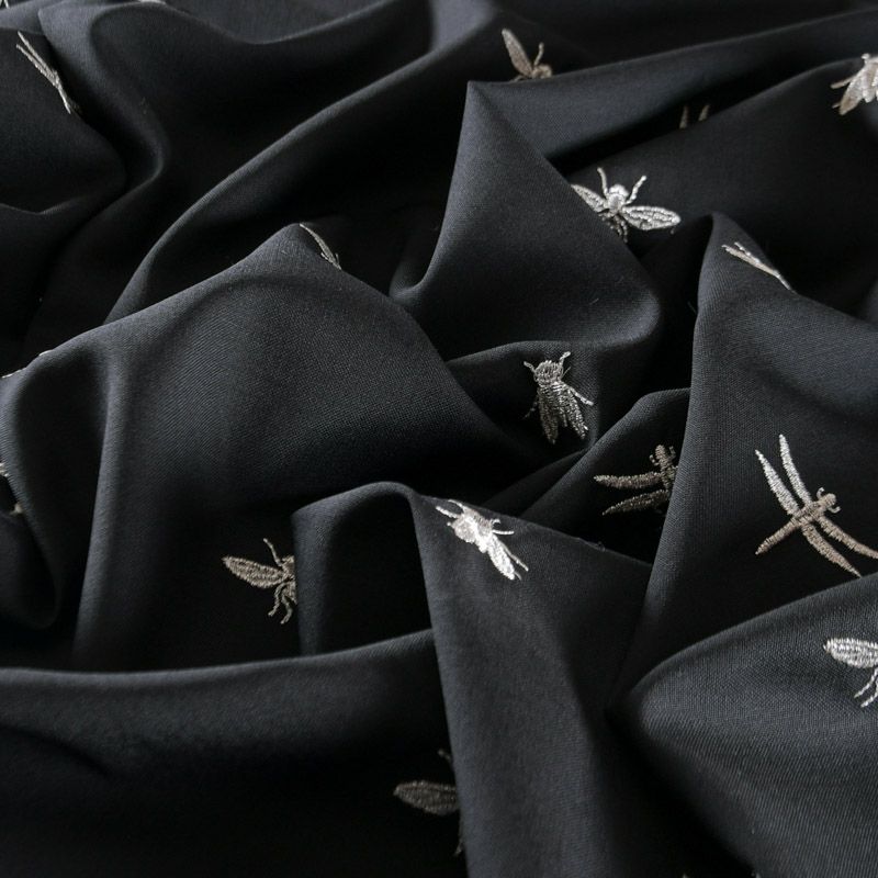 Ткань костюмная с вышивкой 025-12278 черный в Норильске