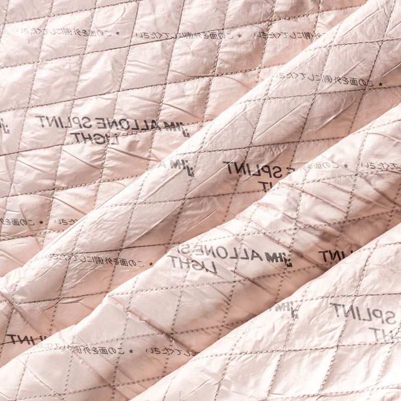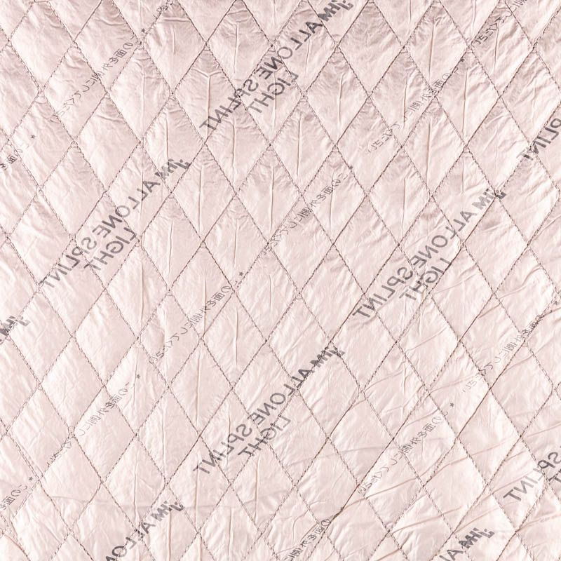 Двухслойная курточная ткань пудрово-розового оттенка с легким эффектом перламутра, простеганная не крупными ромбами размером 3х3 см. Нижний слой - синтепон, верхний - полиэстер, по качеству напоминает болонь. Очень мягкая и легкая, пластичная, хорошо драпируется. Прекрасно подойдет для  пошива легких пальто, курток, жилетов, накидок-кейпов, объемных сумок.