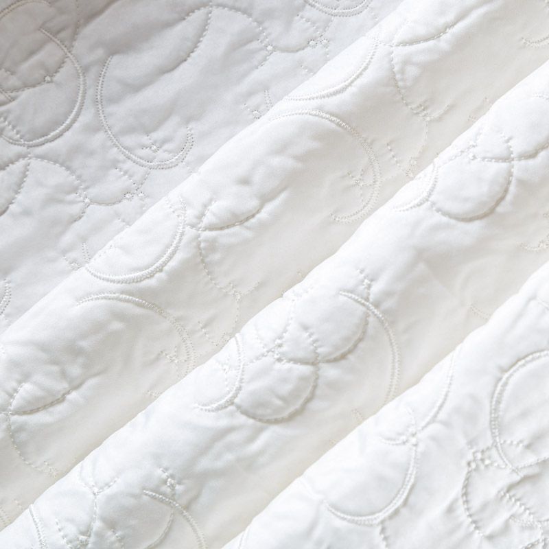 Двухслойная курточная ткань молочного оттенка, с абстрактной стежкой нитками в тон полотну. Нижний слой - синтепон, верхний - полиэстер, по качеству напоминает болонь. Ткань легкая, пластичная, хорошо драпируется. Прекрасно подойдет для пошива пальто, курток, жилетов, накидок-кейпов, объемных сумок, одежды для домашних питомцев, туристического снаряжения.
