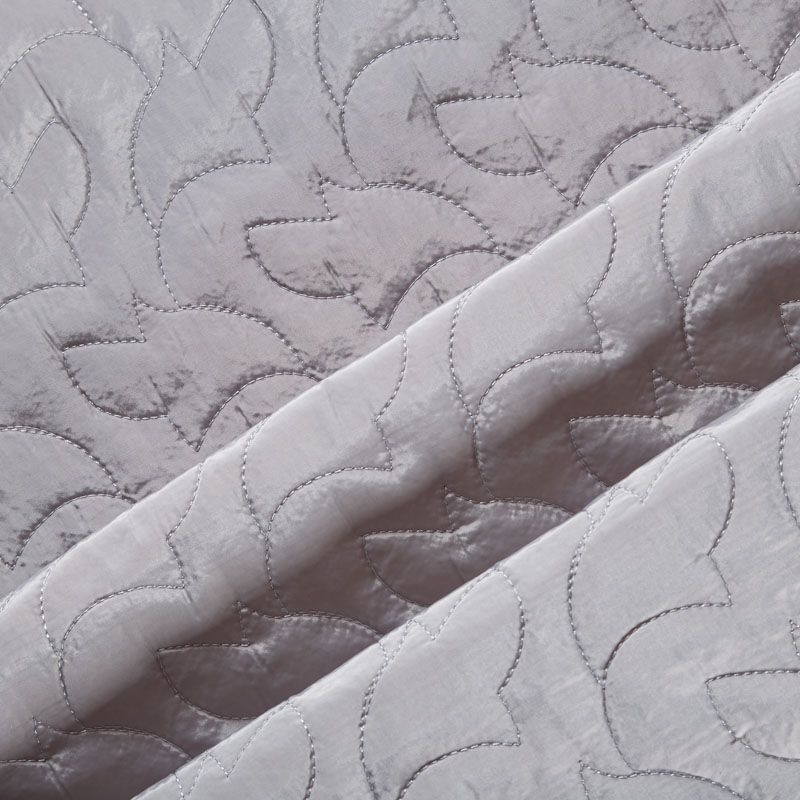 Двухслойная курточная ткань светло-серого оттенка, простеганная фигурной вышивкой нитками в тон. Нижний слой - синтепон, верхний - плотный матовый полиэстер. Очень мягкая и легкая, пластичная, хорошо драпируется. Прекрасно подойдет для пошива легких пальто, курток, жилетов, накидок-кейпов, объемных сумок.