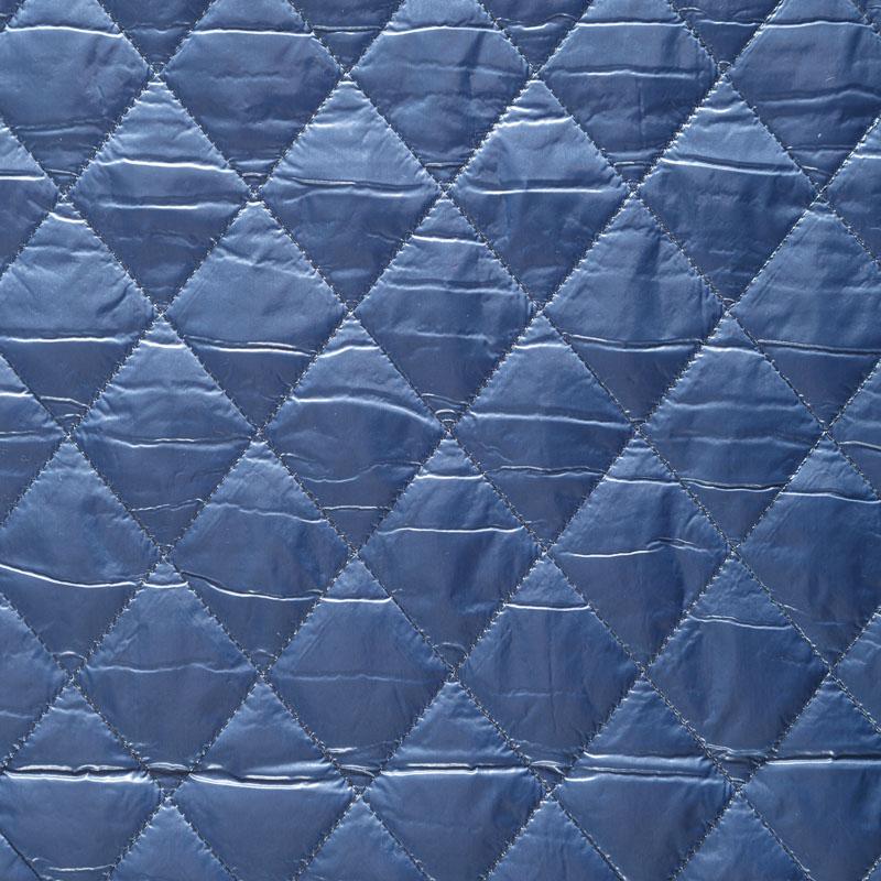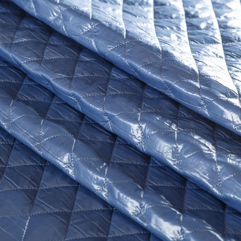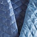 Трехслойная курточная ткань голубого оттенка, простеганная не крупными ромбами. Нижний слой - матовый фактурный полиэстер, средний - тонкий синтепон, верхний - глянцевая гладкая плащевка. Очень мягкая и легкая, пластичная, хорошо драпируется. Прекрасно подойдет для  пошива легких пальто, бомберов, парки, курток, жилетов, накидок-кейпов, объемных сумок.
