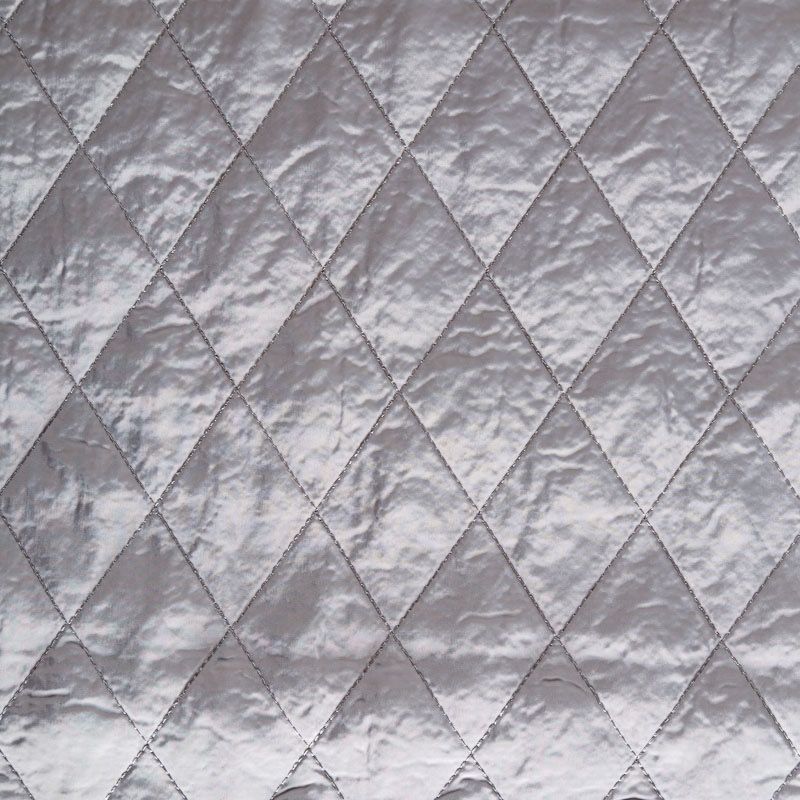 Двухслойная курточная ткань серого оттенка, простеганная не крупными ромбами. Нижний слой - синтепон, верхний - матовый фактурный полиэстер. Очень мягкая и легкая, пластичная, хорошо драпируется. Прекрасно подойдет для  пошива легких пальто, бомберов, парки, курток, жилетов, накидок-кейпов, объемных сумок.