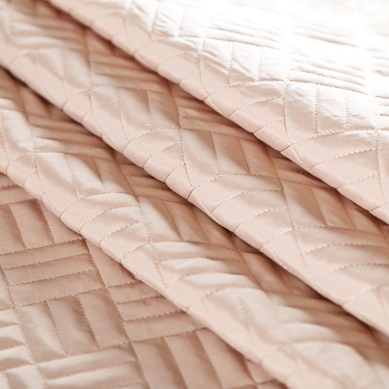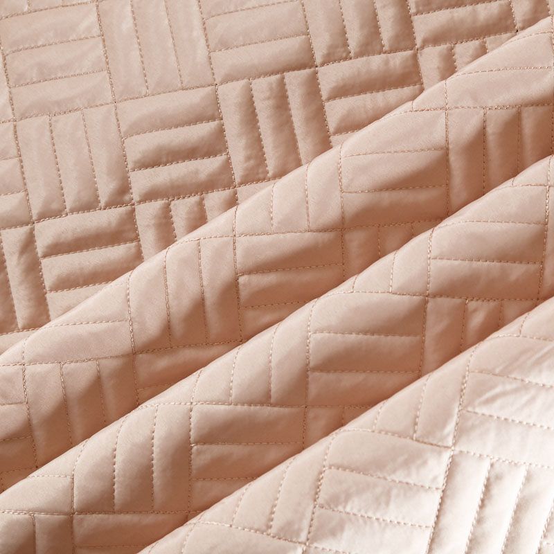 Двухслойная курточная ткань холодного бежевого оттенка, простеганная фигурной вышивкой нитками в тон. Нижний слой - синтепон, верхний - плотный матовый полиэстер. Очень мягкая и легкая, пластичная, хорошо драпируется. Прекрасно подойдет для пошива легких пальто, курток, жилетов, накидок-кейпов, объемных сумок.