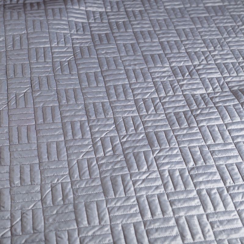 Двухслойная курточная ткань серого оттенка, простеганная фигурной вышивкой нитками в тон. Нижний слой - синтепон, верхний - плотный матовый полиэстер. Очень мягкая и легкая, пластичная, хорошо драпируется. Прекрасно подойдет для пошива легких пальто, курток, жилетов, накидок-кейпов, объемных сумок.