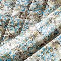 Трехслойная итальянская курточная ткань молочного цвета со стилизованным анималистическим принтом в зеленовато-голубых оттенках, простеганная вертикальными линиями. Нижний слой белого цвета, средний слой - синтепон, верхний слой - принтованная плащевая ткань. Ткань легкая, пластичная, хорошо драпируется. Прекрасно подойдет для  пошива пальто, курток, бомберов, жилетов, накидок-кейпов, комбинезонов, объемных сумок, одежды для домашних питомцев, туристического снаряжения.