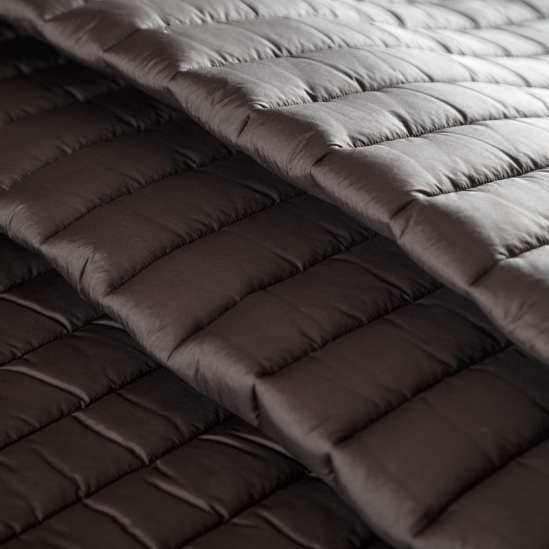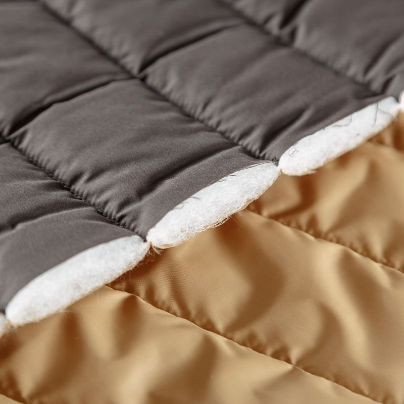 Итальяская трехслойная двухсторонняя курточная ткань, простеганная широкими полосами вдоль кромки. Средний слой - воздушный синтепоновый утеплитель, нижний и верхний - матовая плотная плащевая ткань разных оттенков. Очень мягкая и легкая, пластичная, хорошо драпируется. Прекрасно подойдет для  пошива легких пальто, бомберов, парки, курток, жилетов, накидок-кейпов, объемных сумок.