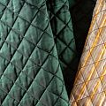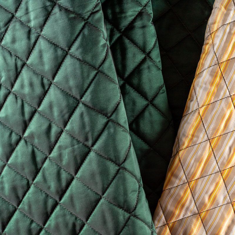 Курточный купон на синтепоне и подкладке, простеганный не крупными ромбами размером 3,5х3,5 см. С лицевой стороны тонкая, но прочная плащевая ткань с вышивкой в виде цветущей ветки сакуры, с изнаночной - желто-бежевая ткань с полоску. Материал мягкий, объемный и "воздушный", хорошо держит форму и подойдет для пошива легких пальто, курток, жилетов, накидок-кейпов, парки.