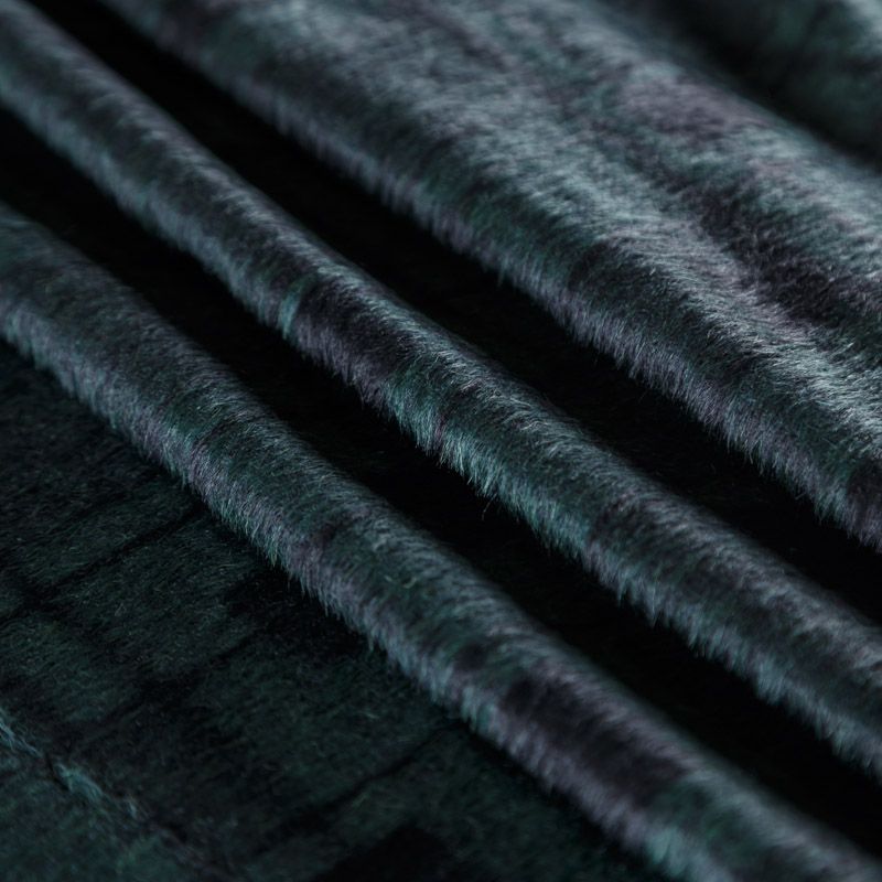 Пальтовая итальянская шерсть в черно-зеленую клетку. Ткань плотная, достаточно теплая, комфортная для одежды на сезон осень-зима. Полотно имеет средний ворс. Мягкое и нежное на ощупь, не толстое и не тяжелое, хорошо держит форму. Прекрасно подойдет для пошива женских пальто, теплых костюмов, кейпов, мягких бомберов, жилетов и головных уборов.