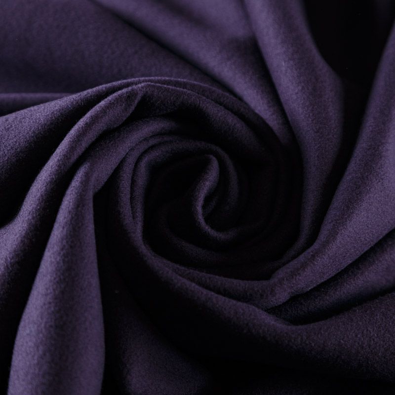 Итальянская пальтовая шерсть в темно-фиолетовом оттенке. Ткань мягкая, пластичная, приятная на ощупь, гибкая, средней толщины, при этом высокой плотности. Поверхность имеет короткий ворс. Подойдет для пошива пальто, куртки, жакета, парки, кейпа, жакета или пончо.