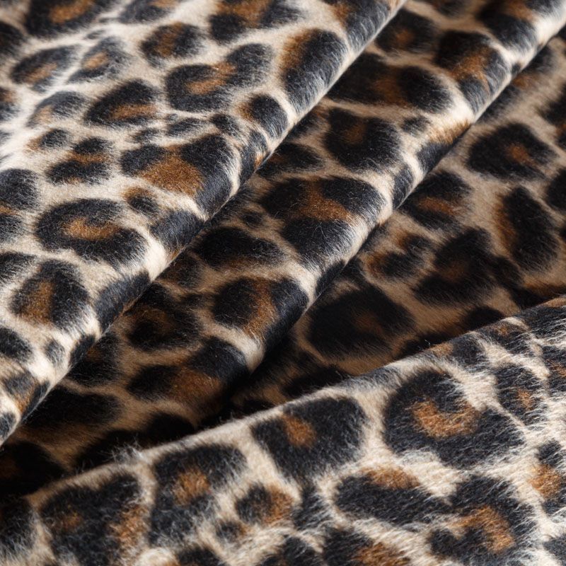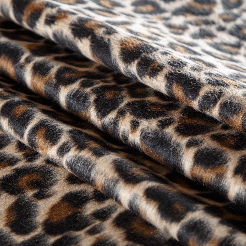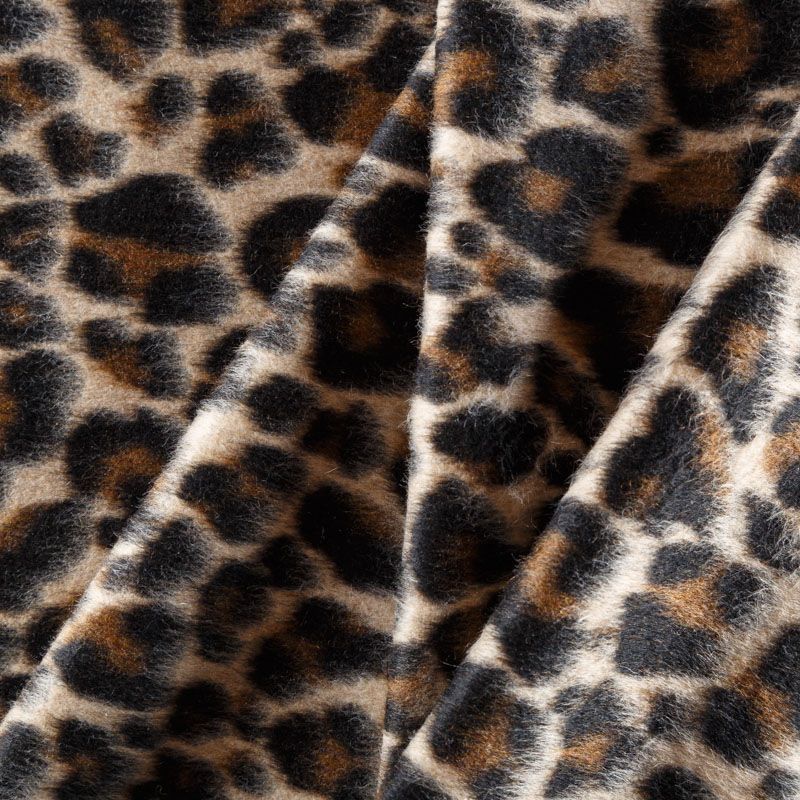 Эффектная итальянская плотная пальтовая шерсть с анималистическим принтом в роскошном бежево-коричневом цвете. Ткань великолепно держит форму, имеет мягкий направленный ворс, поверхность мягкая, шелковистая и приятная на ощупь. Идеально подойдет для пальто прямого кроя, кокона, бомбера, куртки, жилета.