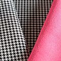 Итальянская пальтово-костюмная двухсторонняя ткань от известного бренда. Одна сторона - чёрно-белая мелкая "гусиная лапка", другая сторона оттенка фуксии. Ткань достаточно плотная, формоустойчивая, пластичная, не колючая, очень комфортна в носке и пошиве. Слои разделяются, что позволяет сшить изделия со скрытыми швами. Оригинальный, яркий и красивый вариант для  пошива лёгкого пальто, тренча, парки, бомбера, тёплого жакета или юбки.