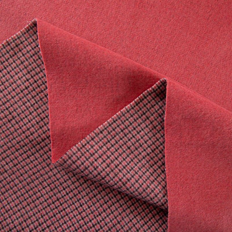 Ткань пальтовая двухсторонняя 040-16738 розовый/клетка