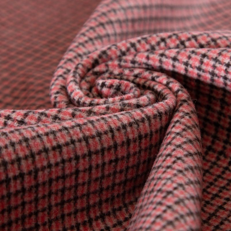 Ткань пальтовая двухсторонняя 040-16738 розовый/клетка в Норильске
