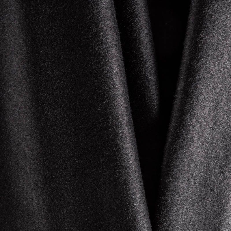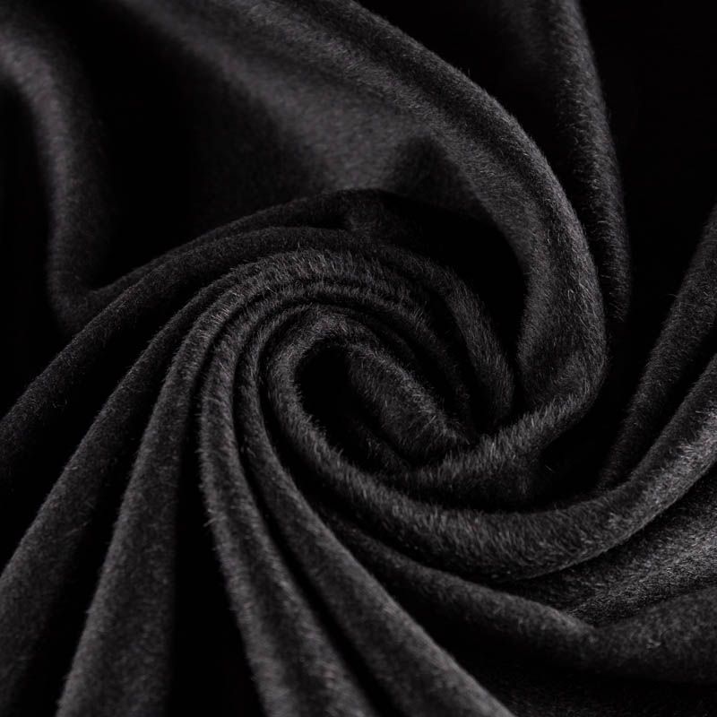 Пальтовая итальянская шерсть в черном цвете. Ткань плотная, достаточно теплая, комфортная для одежды на сезон осень-зима. Полотно имеет средний ворс. Мягкое и нежное на ощупь, не толстое и не тяжелое, хорошо держит форму. Прекрасно подойдет для пошива женских пальто, теплых костюмов, кейпов, мягких бомберов, жилетов и головных уборов.