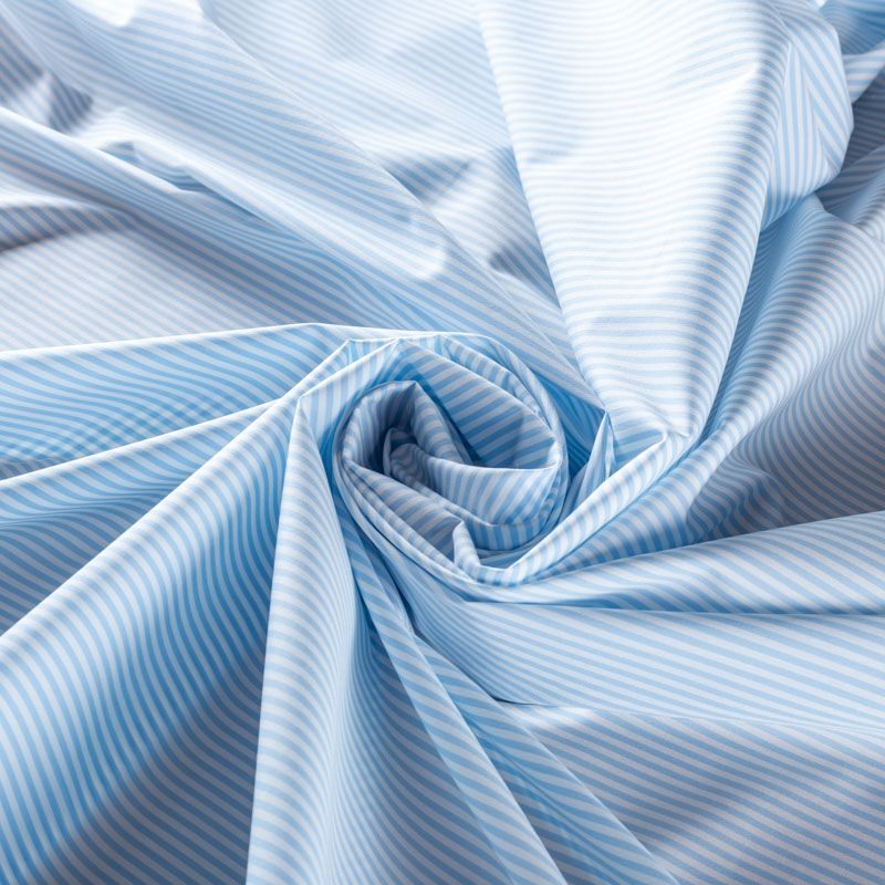 Итальянский плательно-рубашечный хлопок в частую узкую полоску голубого оттенка. Ткань мягкая, лёгкая, непрозрачная, пластичная и приятная к телу, хорошо драпируется, имеет гладкую матовую поверхность и сатиновое плетение. Прекрасно подойдет как для пошива платья-рубашки, сарафана, платьев различных фасонов, туники, топа, летнего костюма, комбинезона.