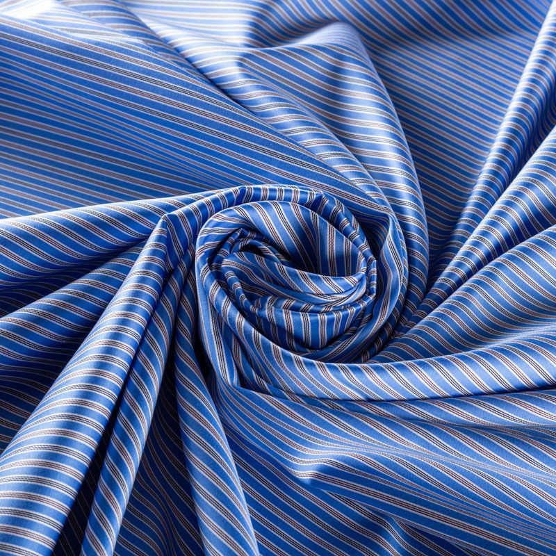 Итальянский плательно-рубашечный хлопок голубого цвета в сложную черно-белую полоску. Ткань мягкая, лёгкая, непрозрачная, пластичная и приятная к телу, хорошо драпируется, имеет гладкую матовую поверхность и сатиновое плетение. Прекрасно подойдет как для пошива платья-рубашки, сарафана, платьев различных фасонов, туники, топа, летнего костюма, комбинезона.