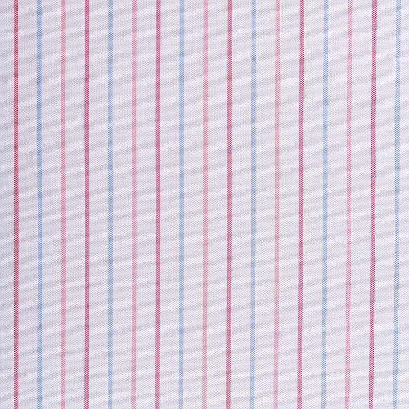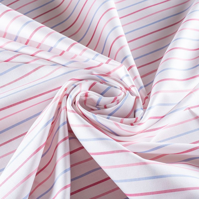Итальянский плательно-рубашечный хлопок в красно-голубую полоску средней ширины. Ткань мягкая, лёгкая, непрозрачная, пластичная и приятная к телу, хорошо драпируется, имеет гладкую матовую поверхность и сатиновое плетение. Прекрасно подойдет как для пошива платья-рубашки, сарафана, платьев различных фасонов, туники, топа, летнего костюма, комбинезона.