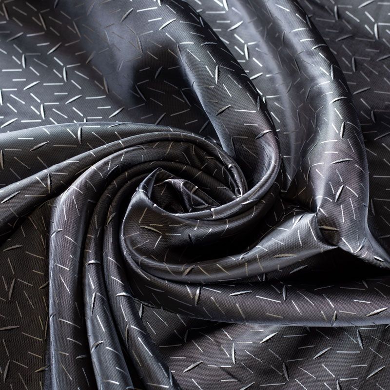 Подкладочная ткань легкая, с мелким абстрактным жаккардовым рисунком, с красивым блеском. Не  просвечивает, хорошо скользит. Подойдет для изготовления таких изделий, как пальто, костюмы, куртка, шуба, платье, жакет.