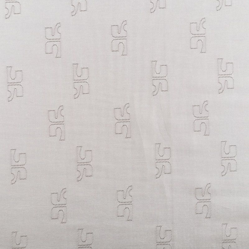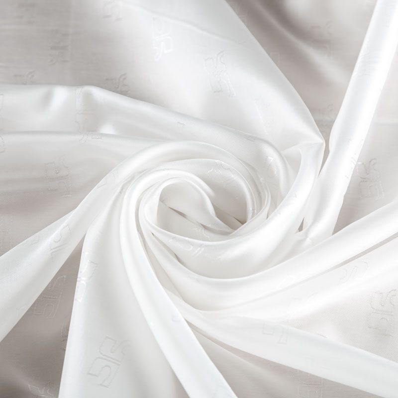 Итальянская подкладочная ткань из вискозы белого оттенка с жаккардовым геометрическим узором и красивым лоском. Полотно средней плотности, легкое, не просвечивает, хорошо скользит, не тянется. Подойдет для изготовления таких изделий, как пальто, костюмы, куртка, шуба, платье, жакет.