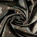 Подкладочная ткань легкая, с жаккардовым "горохом" пыльного серо-зеленого оттенка, с красивым блеском. Не  просвечивает, хорошо скользит. Подойдет для изготовления таких изделий, как пальто, костюмы, куртка, шуба, платье, жакет.