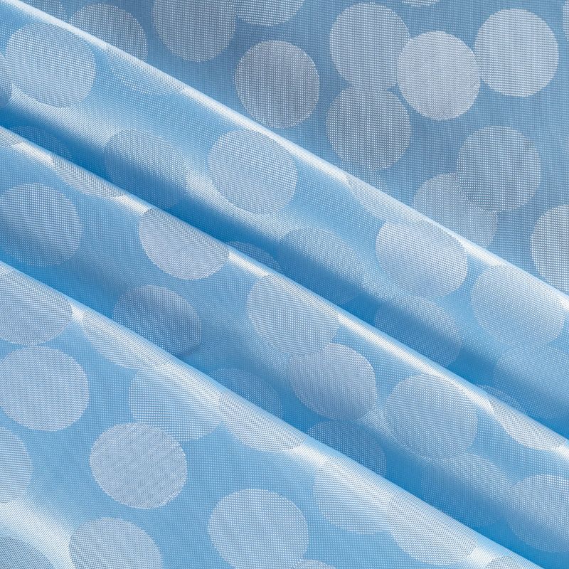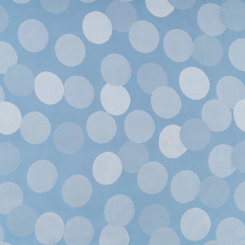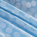 Подкладочная ткань легкая, с жаккардовым крупным "горохом",  голубого оттенка, с красивым блеском. Не  просвечивает, хорошо скользит. Подойдет для изготовления таких изделий, как пальто, костюмы, куртка, шуба, платье, жакет.