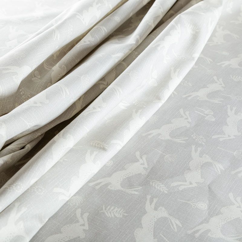 Английская ткань из коллекции Джамп известного бренда Fryett's со сказочным дизайном с изображением прыгающих зайцев на текстурированной хлопковой основе. Ткань средней плотности, прекрасно держит форму, драпируется в устойчивые складки. Подойдет для плотных штор, покрывал, подушек, скатертей, салфеток и других элементов текстильного интерьера.