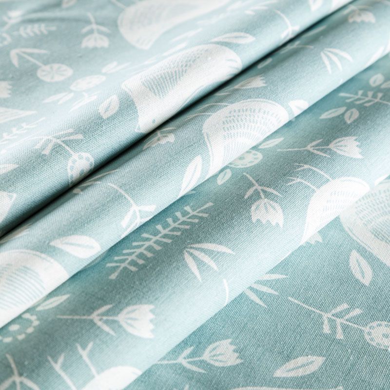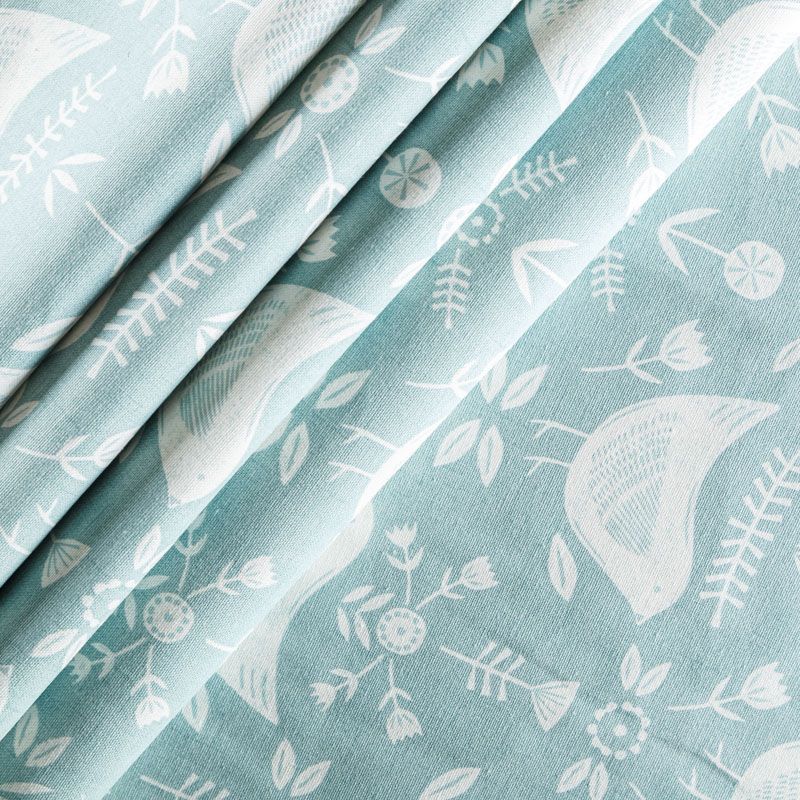 Хлопковая портьерная ткань Нарвик из коллекции Сканди английского производителя Fryett's Fabric. На мятно-бирюзовой текстурированной основе наснесен принт в виде белых стилизованных птиц и цветов. Ткань средней плотности, прекрасно держит форму, драпируется в устойчивые складки. Подойдет для классических портьер, римских штор, покрывал, подушек, скатертей, салфеток и других элементов текстильного интерьера как в самостоятельном исполнении, так и качестве компаньона к однотонным варинтам.